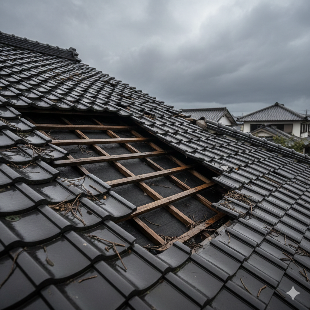 「台風の後から漏れ始めた」「瓦が飛んでいるのが見えた」など、